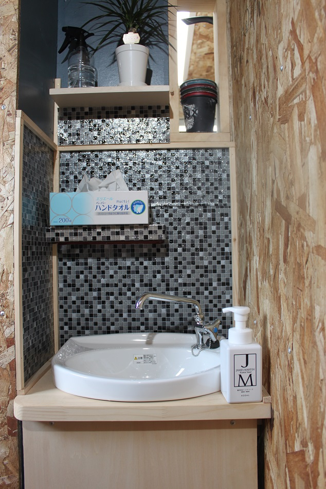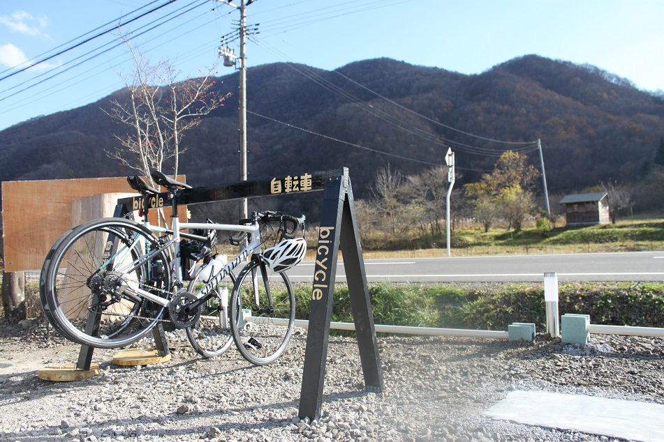 看板や禁煙所・サイクルスタンド等はオーナー様の自作。