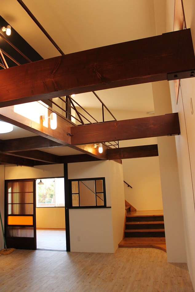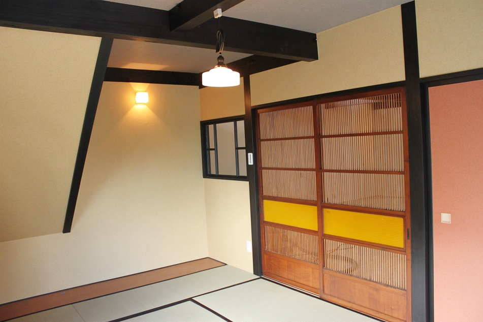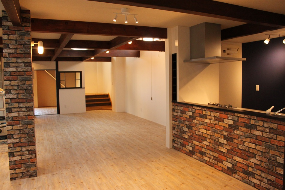 古物販売店だった一戸建をフルリノベーションして住宅へと変身。 1Fのリビングは広々32帖!内装にこだわった素敵な空間が広がっております。 その他に6帖の和室とキッチン・お風呂・トイレ。和室の襖には珍しいピンクの和紙とアンティークの引き戸を使用、大正ロマンな和室が出来上がりました。2階は壁色の違う6帖程のお部屋が3つと収納・トイレ。元々店舗だったとは思えない程素敵な住宅へと変貌を遂げました。