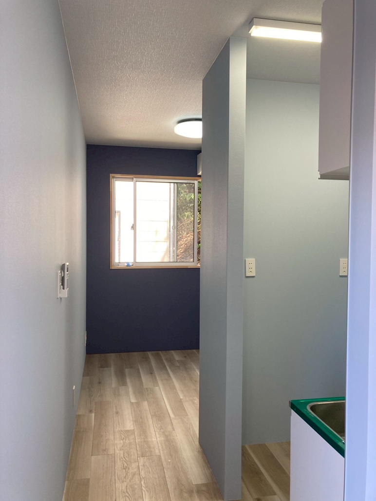 5帖ほどのコンパクトなワンルームではありますが、棚付きの2口コンロキッチン、ユニットバスの素敵なワンルームの完成です!