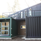 1階部分は40フィート2台×建築物、2階に40フィートコンテナを斜めに設置するという難易度の高いコンテナハウスに挑戦させていただきました。