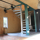 1階部分にはオフィスルームの他、浴室洗面を設置、らせん階段で2階へ上がるとキッチンとプライベートルーム2室が40フィートコンテナの中に広がります。鉄骨で設置されたデッキもコンテナに見事にマッチし、存在感抜群の他にはないコンテナオフィス+ハウスが出来上がりました。
