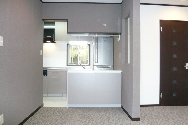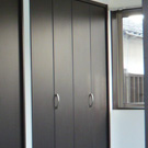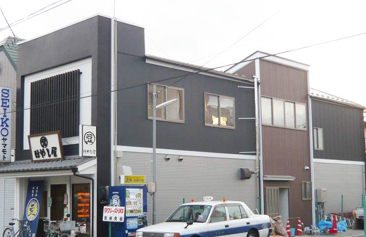 築60年以上の老舗豆腐店の店舗、作業場、住居スペースのリフォーム。 住居スペースは1階にリビング、キッチン、バスルームで、2階は寝室(6畳、8畳)、外にバルコニーを設置。正面外観は蔵をイメージした店舗の構えと、側面はシンプルモダン調に和と洋の融合を生かした仕上げ。