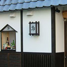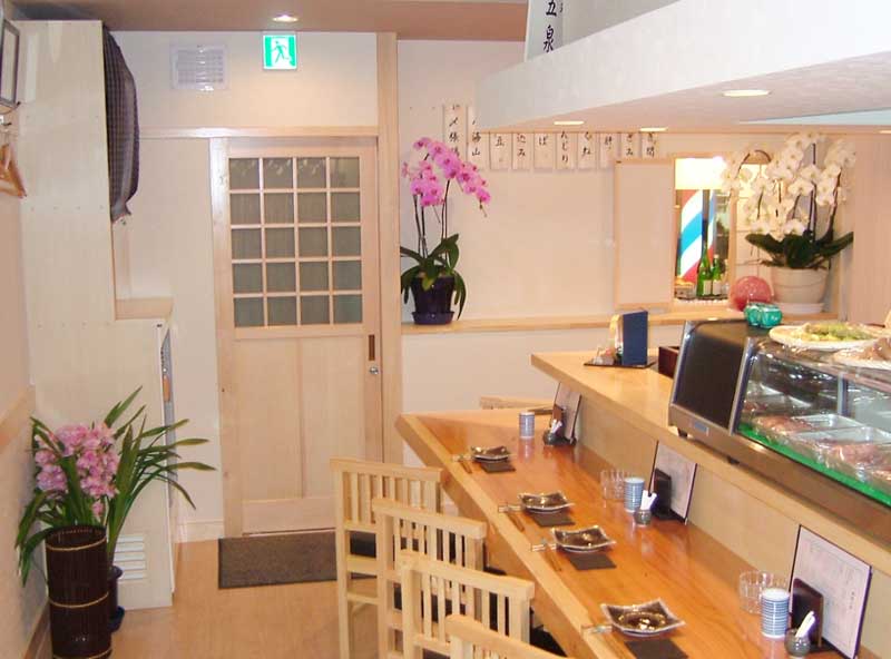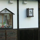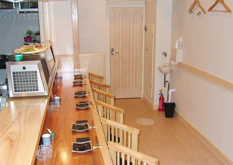 外観は瓦屋根や無垢材を使った入口看板、袖看板、内装はカウンターには1枚板を使うなど温かみを感じさせる造りに。 細部まで施主様のこだわりを形に表現。